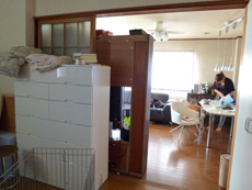 | 施工前の様子です。箪笥などを戸の前に置き、部屋を仕切っていました。 | 施工前の収納スペースの様子です。 | 施工前の収納スペースを、反対から見た様子です。 |