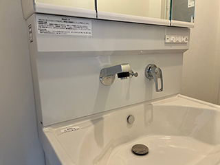 洗面化粧台も新しいものに交換し、清潔で明るい水まわりにリフォームされました。 |