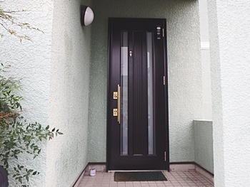 既存玄関ドアの色が黒でしたので、非常に重い感じでした。LIXILのリフォームドアに入れ替えをし、明るい印象に仕上がりました。 塗装後の外壁の色とも合っていて明るい印象です。 |