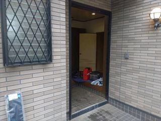 20年前は、玄関ドアの交換と言いますと、一大事でした。外壁の一部も含めドアを枠ごと外し、下のタイルも斫りました。 |