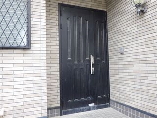 築30年の住宅です。ドアを含めた既存サッシの色はブラックです。玄関ドアは、その家の顔ですが...長年使用していると、建付けが悪くなったり、ドアハンドルや錠が壊れたりと、トラブルも発生します。 |